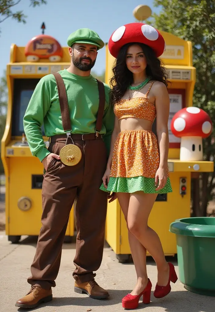 Bring the nostalgia! Channel your inner Mario and Luigi, Pac-Man and Ms. Pac-Man, or another beloved arcade duo. Add pixelated props or cardboard coins to complete the look.