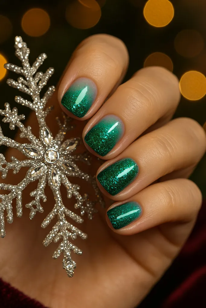Green glitter ombre brings instant holiday glam. Perfect for Christmas parties, winter events, and New Year’s celebrations. Ombre is super trendy—why not try it with festive colors and sparkle?