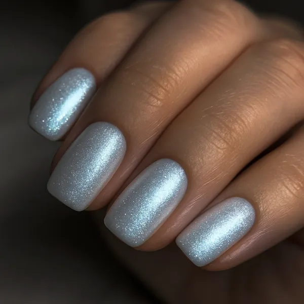 Icy Silver Short Nails for a Frosty Christmas Look