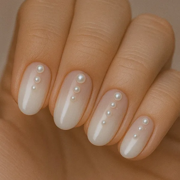 Elegant Nude Nails with Pearl Details