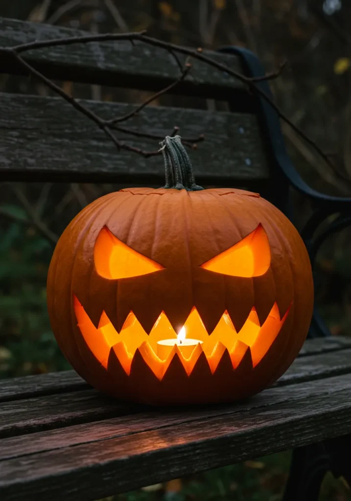 8. Spooky Pumpkin on a Bench