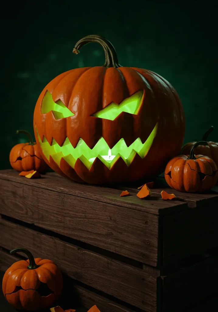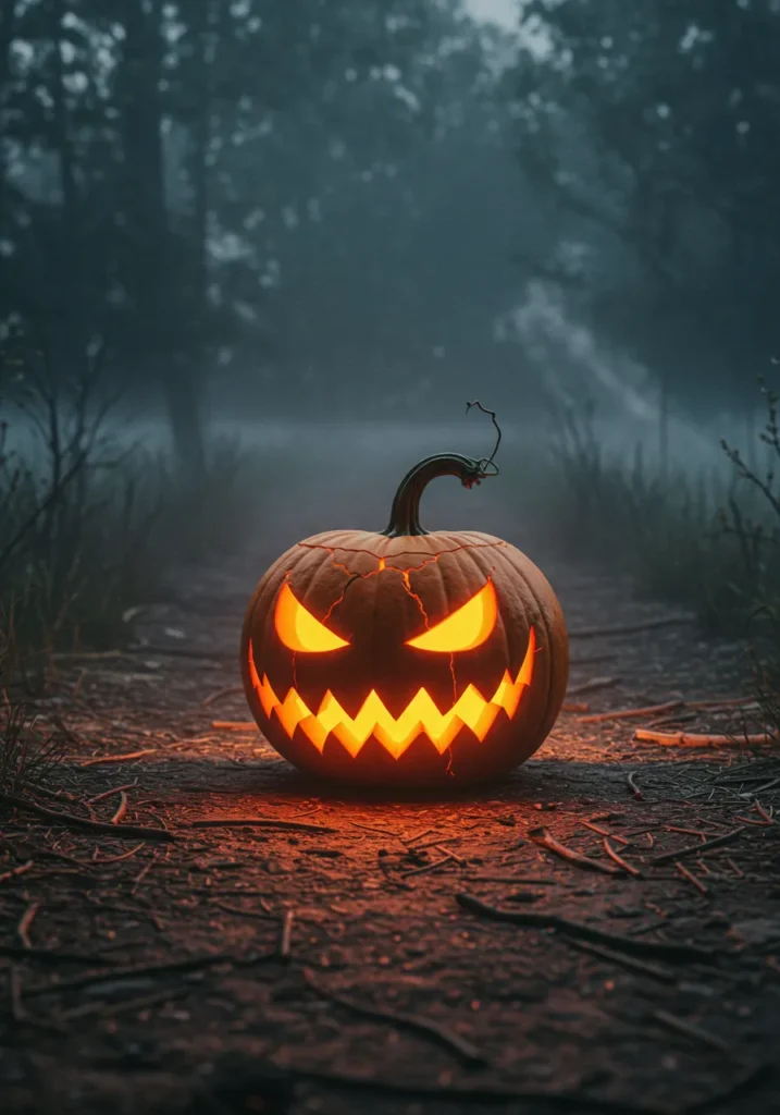 Carve glowing cracks across your pumpkin’s face for a “fractured and cursed” effect. Place it along a foggy garden path for extra drama.