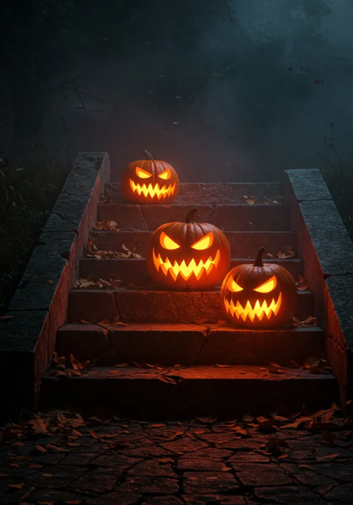 2. Creepy Pumpkins on the Stairs