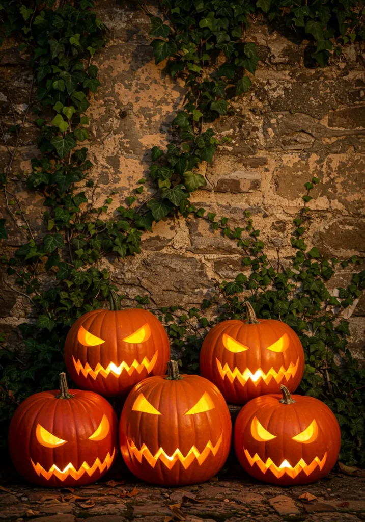 Arrange a group of glowing pumpkins against an old stone wall, letting ivy creep around the edges. The mix of nature and glowing grins creates a rustic yet haunting vibe.