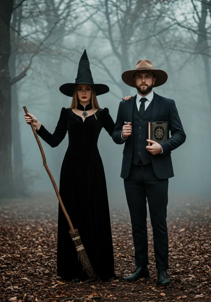 Why it works: Timeless, spooky, and effortlessly stylish — the ultimate Halloween power couple.