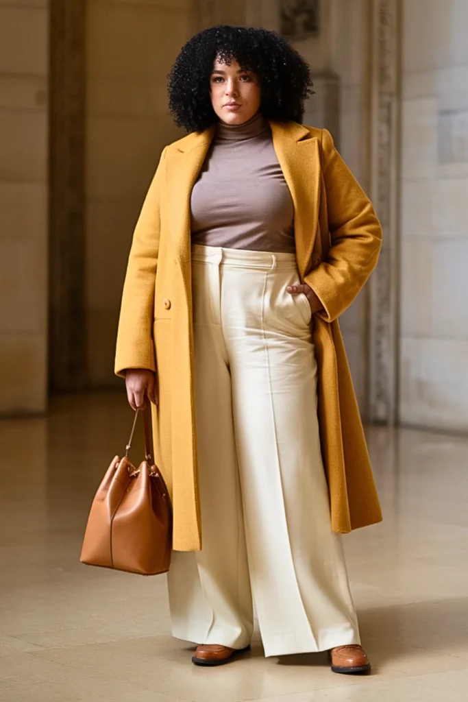 1. Camel Wool Coat + Wide-Leg Trousers