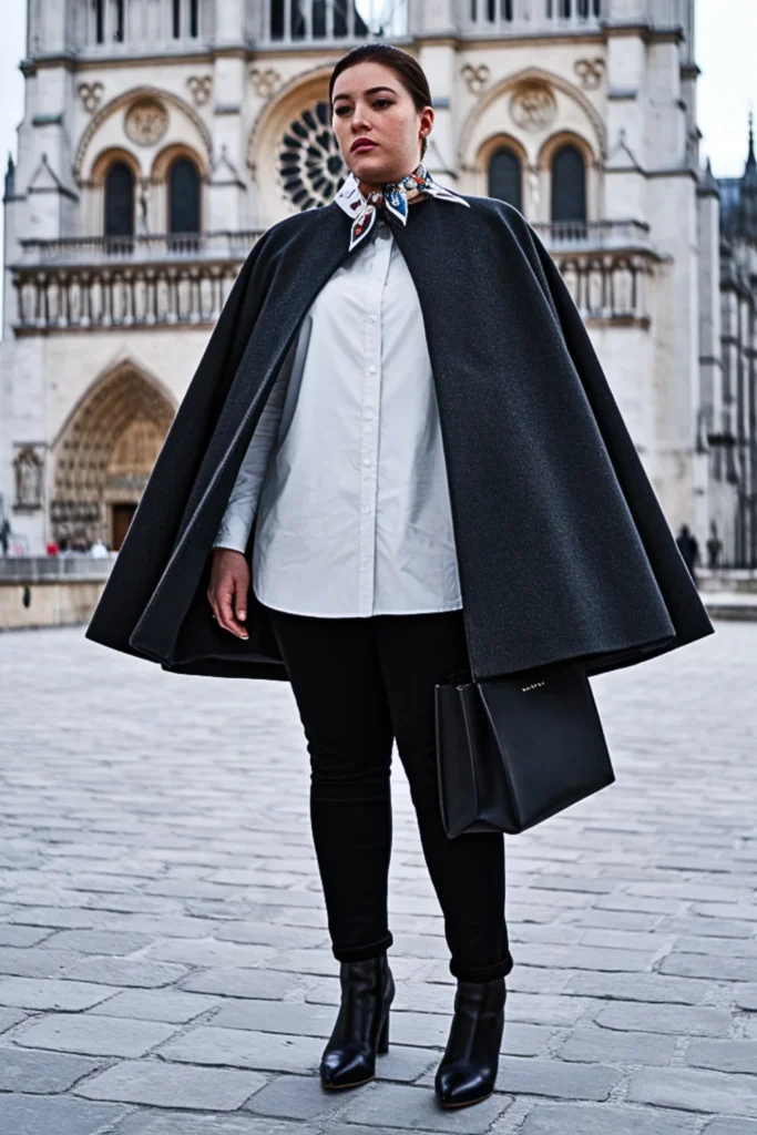 Parisian winter fashion isn’t reserved for tiny influencers in berets. It’s for all of us — curvy women who want to embrace structure, texture, and comfort without compromising on sophistication. Think: structured wool coats, perfectly draped scarves, and boots made for cobblestone streets.