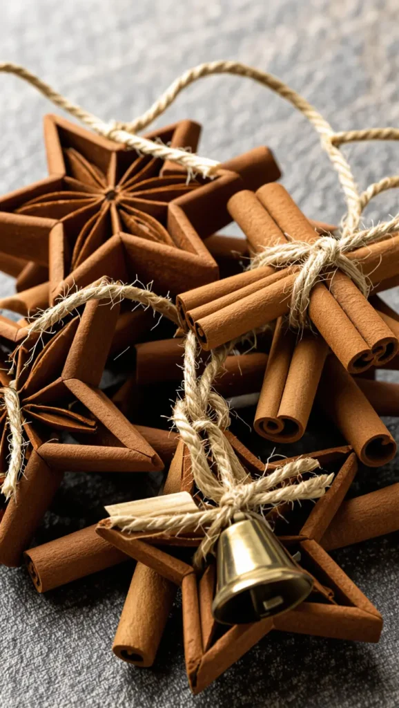 Mix ground cinnamon with applesauce, roll out the dough, and cut festive shapes. Once dry, these ornaments are dark, rustic, and permanently fragrant—perfect for a naturally scented tree.