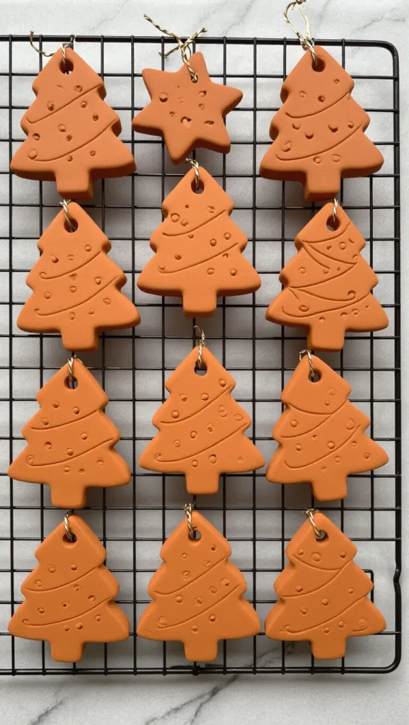 Create ornaments from terracotta or natural clay, shaping trees, stars, or animals. Leave them unpainted for a minimalist, earthy look that feels timeless.