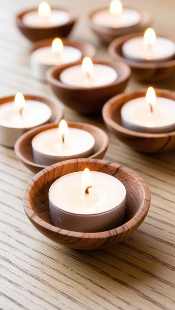 Crack walnuts carefully and use the shell halves as tiny candle holders. Fill them with beeswax and small wicks or mini tea lights. Arranged on a wooden surface, they create a cozy cabin glow. Always supervise open flames.