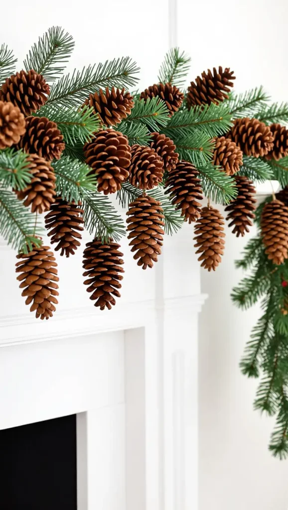 Gather pinecones in various sizes and string them tightly with sturdy wire. Drape the finished garland over a mantel or doorway for an earthy, dramatic statement piece.