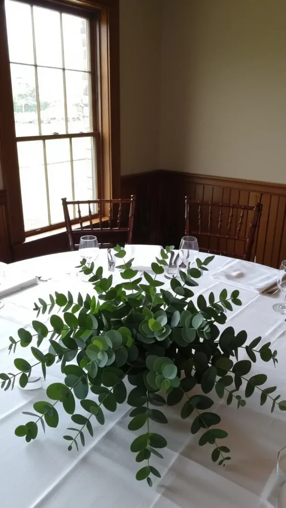 Arrange silvery eucalyptus branches in a low centerpiece for your dining table. The soothing color and light fragrance feel effortlessly elegant, especially against crisp white linens.