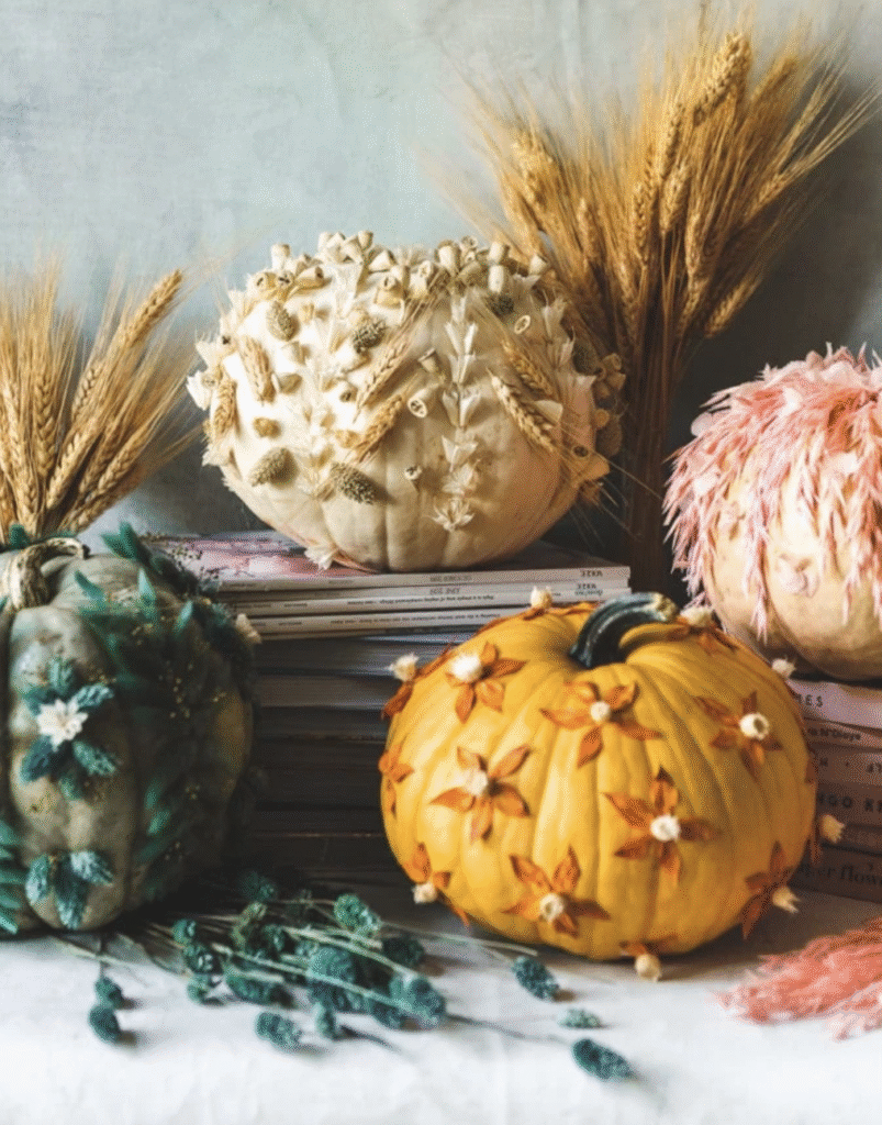 Host a cozy crafternoon with friends and decorate pumpkins using dried flowers and botanicals. Each one turns out beautifully unique.
