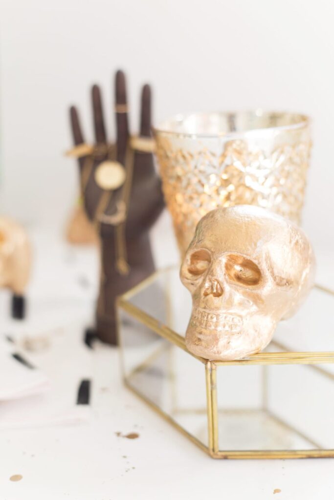 Spray or paint gilded skulls for a glam, edgy Halloween vibe.