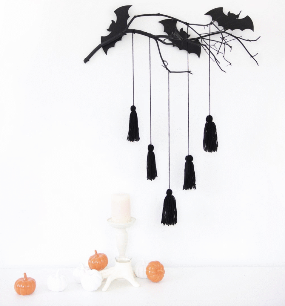 Incorporate natural textures like branches for an organic, modern Halloween look.