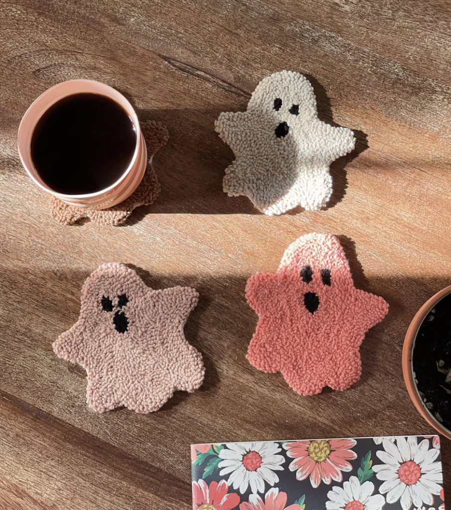 13. Punch Needle Ghost Coasters
