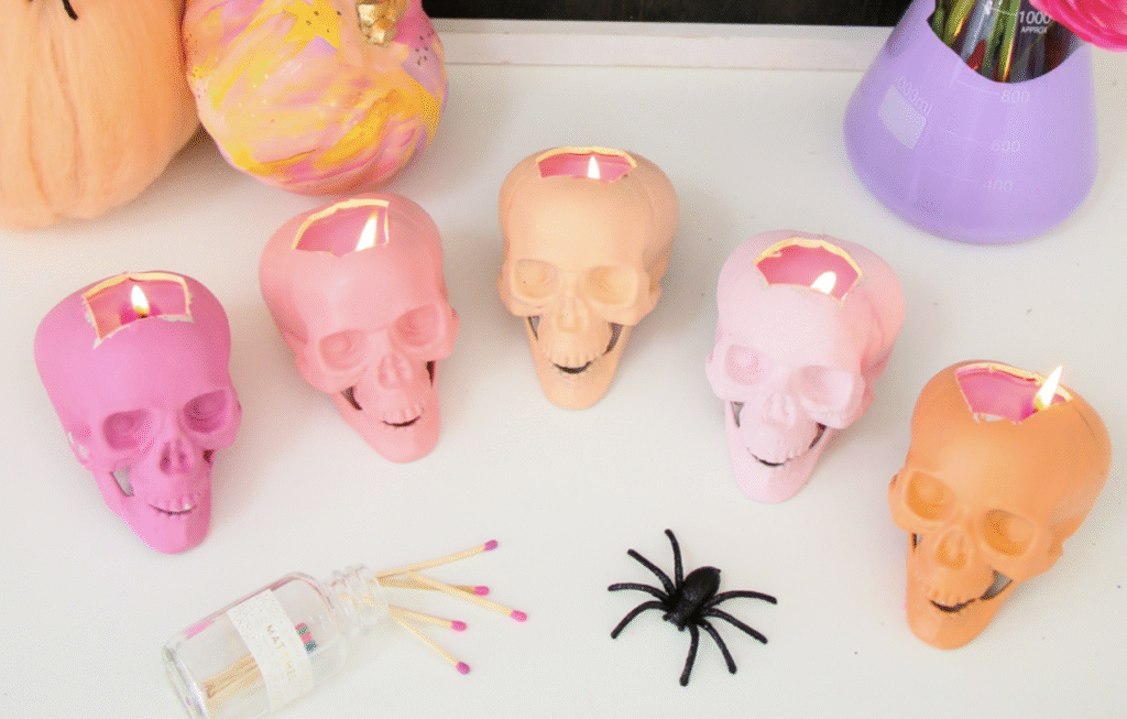 Whimsical, colorful skull candles that glow beautifully — unexpected and fun!