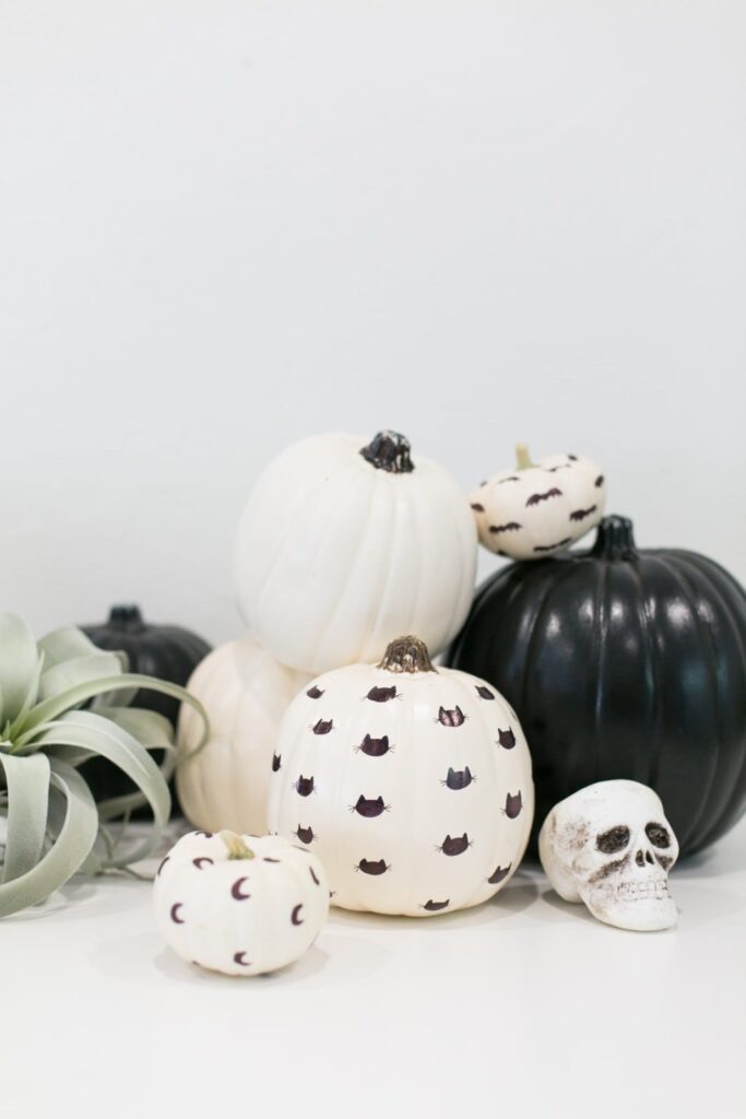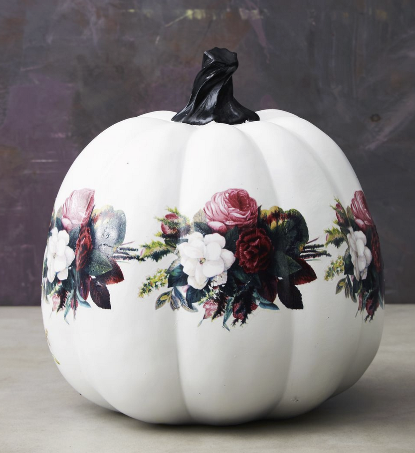 Use floral or celestial temporary tattoos to elevate plain pumpkins into art pieces.