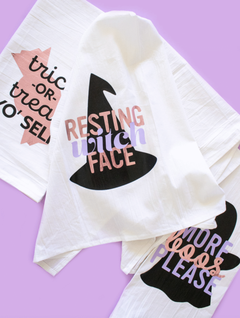 If you have a Cricut, craft punny Halloween towels for your kitchen or gifts.