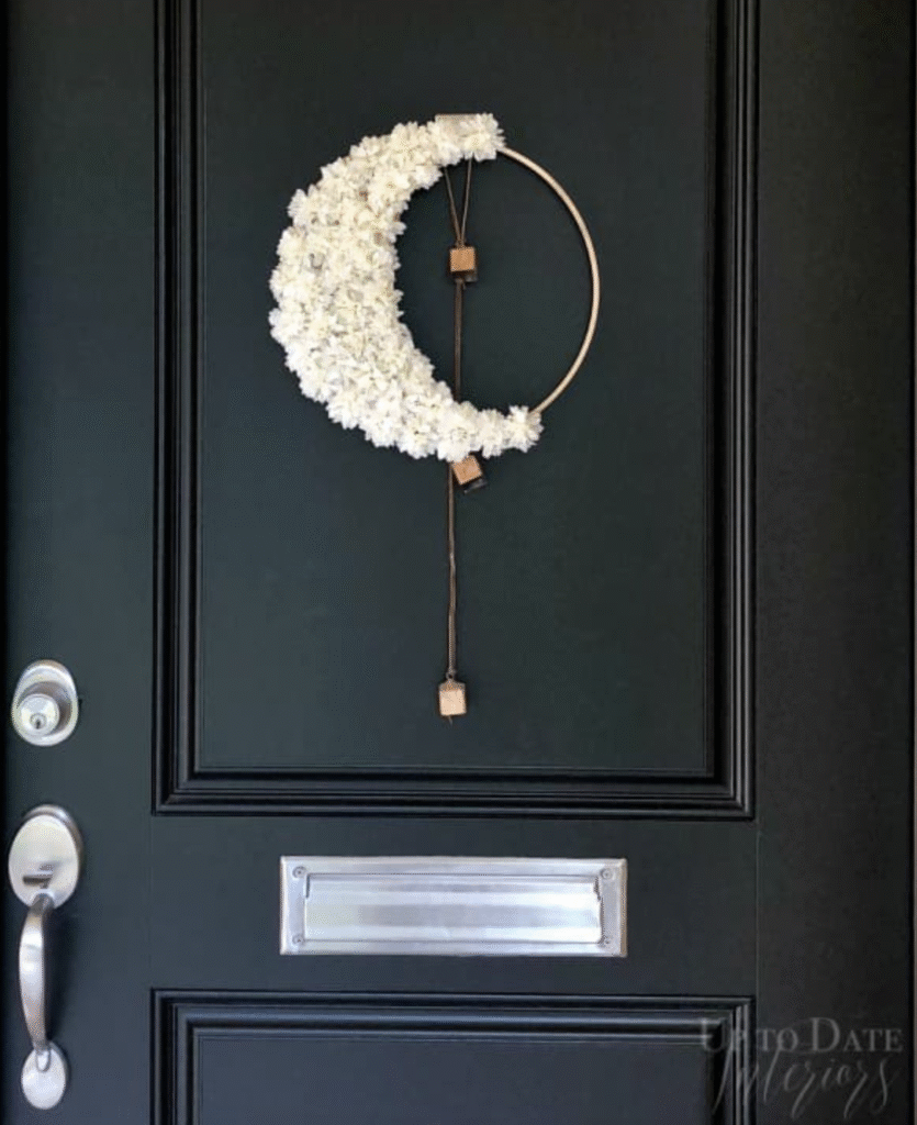 A sleek moon-shaped wreath that’s beautiful over a mantel or mirror.