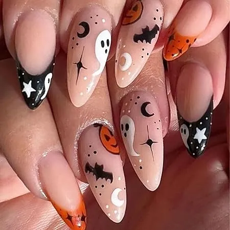A collage of ghosts, bats, moons, and pumpkinsâeach nail unique.
