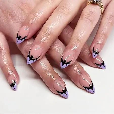 Lavender base, black bat tipsâsubtle but stylishly spooky.