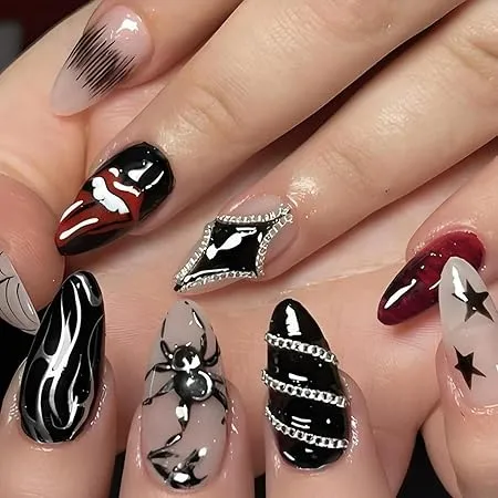 Each nail tells a storyâblood drips, lips, stars, and chains.