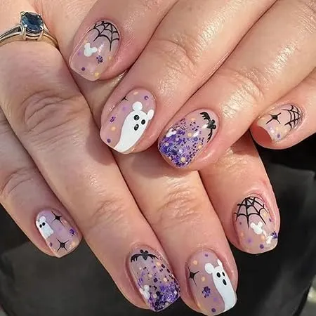 29. Purple Glitter Ghost Nails