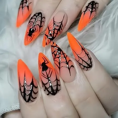 Bright orange ombre with black spiderwebs for that classic Halloween punch.