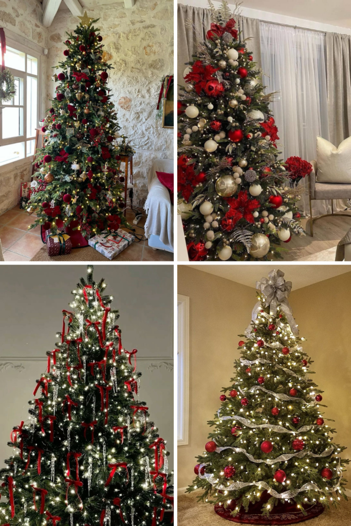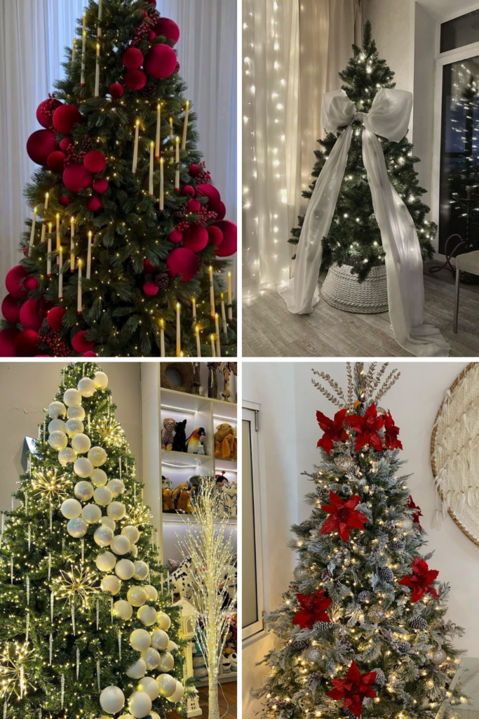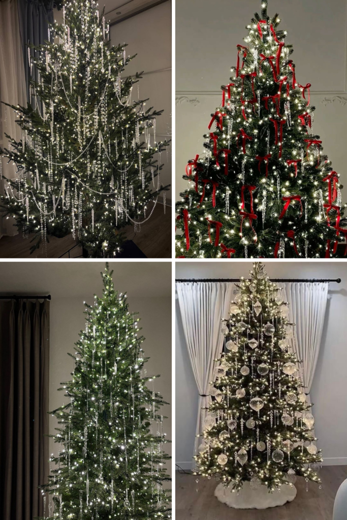 This classic-meets-modern combo radiates luxury and warmth. Decorate with emerald baubles, gold accents, velvet cushions, or green ribbons to create a regal and inviting atmosphere.