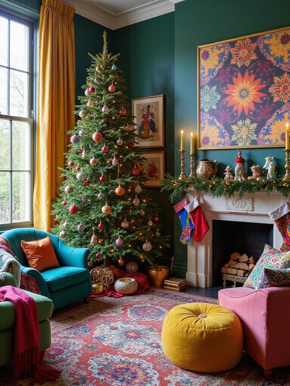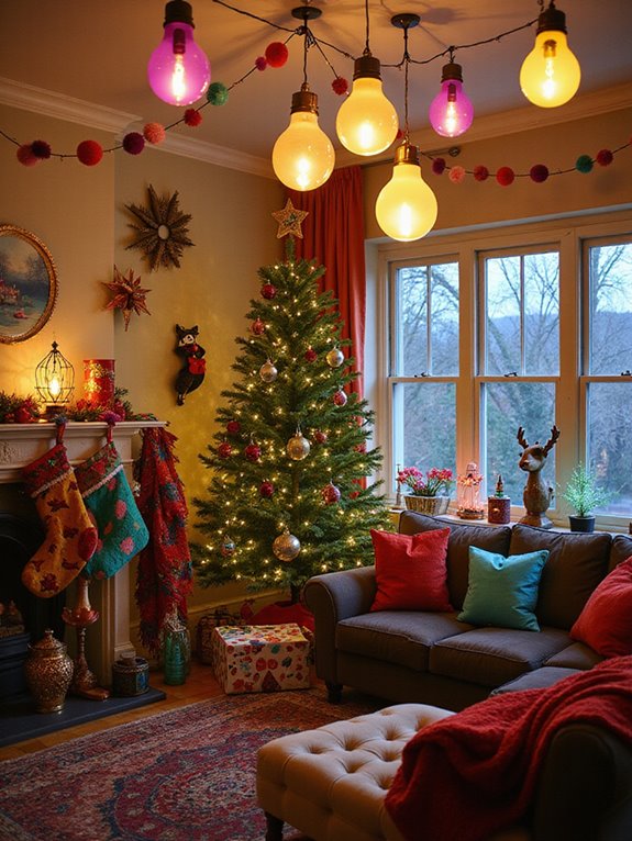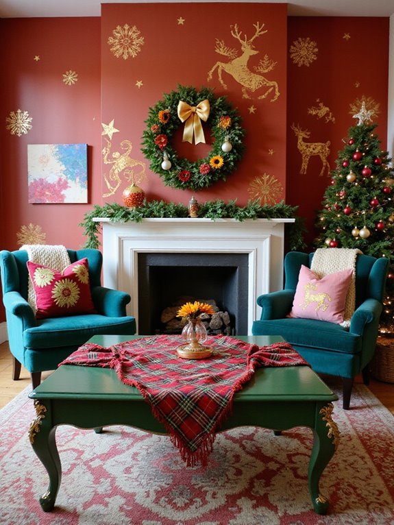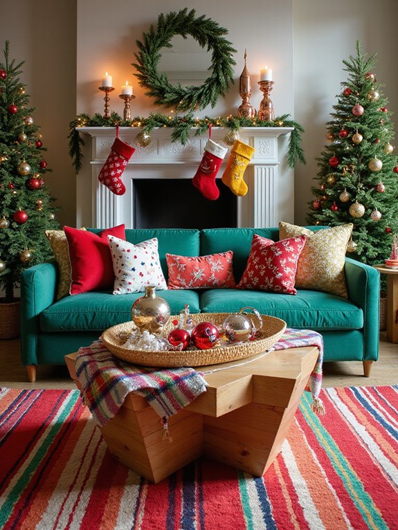 Mixing patterns and colors creates instant cheer. Pair plaid with polka dots or stripes with snowflakes. Try unexpected combos like emerald green with lavender or ruby red with mint. The key? Balance! Anchor bold prints with neutral tones so your space feels energetic but not chaotic.