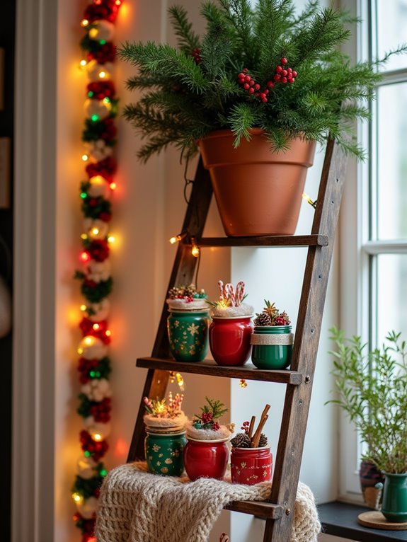 Turn household items into decorations—old sweaters into stockings, jars into light displays, or candy canes into name-card holders. Everyday objects become festive magic when you get creative.
