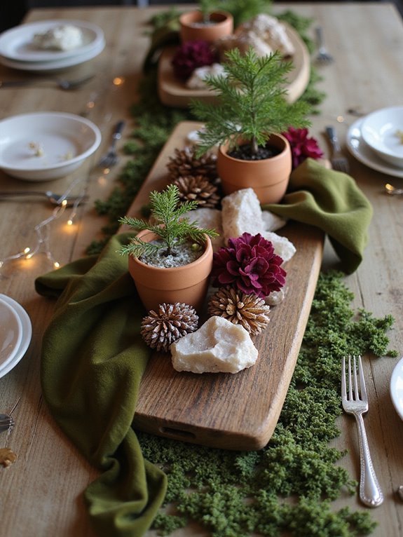 Bring the outdoors in with pinecones, driftwood, and evergreen boughs. Use pinecones as rustic table centerpieces or create driftwood garlands for a beachy winter vibe. These earthy textures balance out all that sparkle and add a natural elegance to your decor.