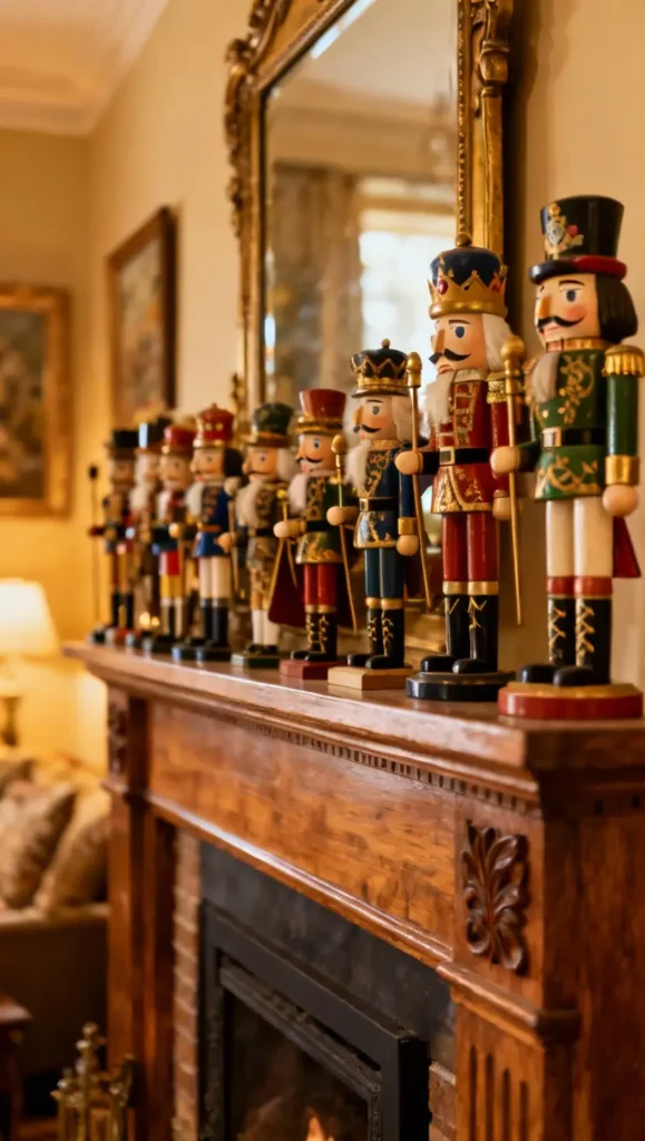 Welcome back classic holiday soldiers! Nutcrackercore is all about maximalist mantel displays with colorful, intricate figurines. Collect vintage pieces for storybook charm that stands guard over your festive home.