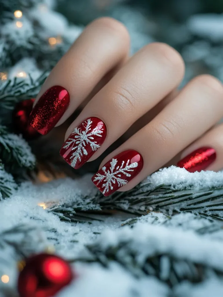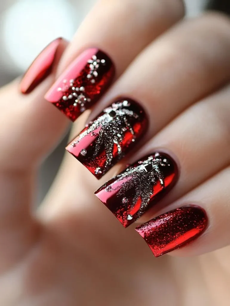 Whether in red, silver, or gold, glitter gradients instantly elevate a manicure. Ombre effects—like red fading into white “snow” or blue into silver “ice”—capture the magical transitions of the season.