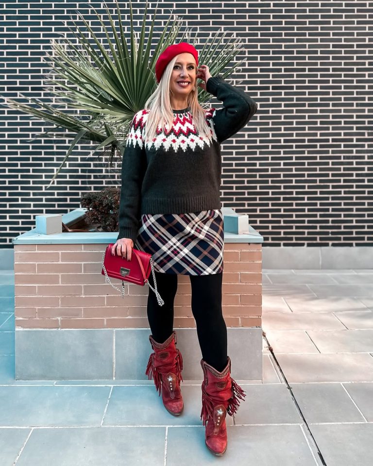 Nothing says Christmas quite like plaid. A classic plaid skirt paired with a cozy knit sweater is nostalgic yet fresh. Add red accessories and boots for a warm, cheerful vibe that works for casual gatherings or festive school events.