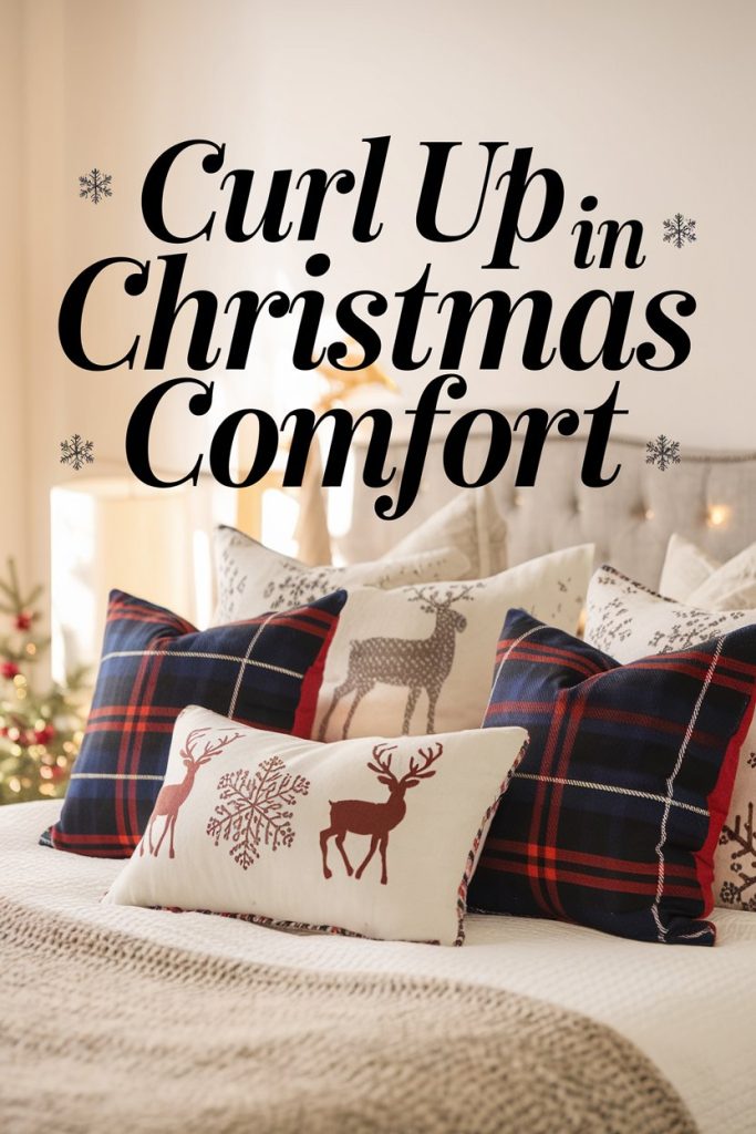 Swap your regular pillows for ones with holiday motifs—think snowflakes, reindeer, or classic plaid. It’s an easy and affordable way to make your bed feel warm, cheerful, and ready for snuggling during the season.
