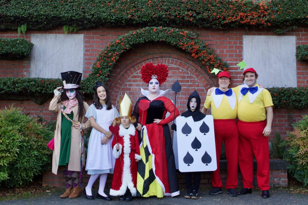 Want something visually striking? Go for an aesthetic theme like a rainbow of animals, Super Mario characters, or a whimsical Alice in Wonderland scene. These costumes make for stunning group photos and will definitely stand out at any event.
