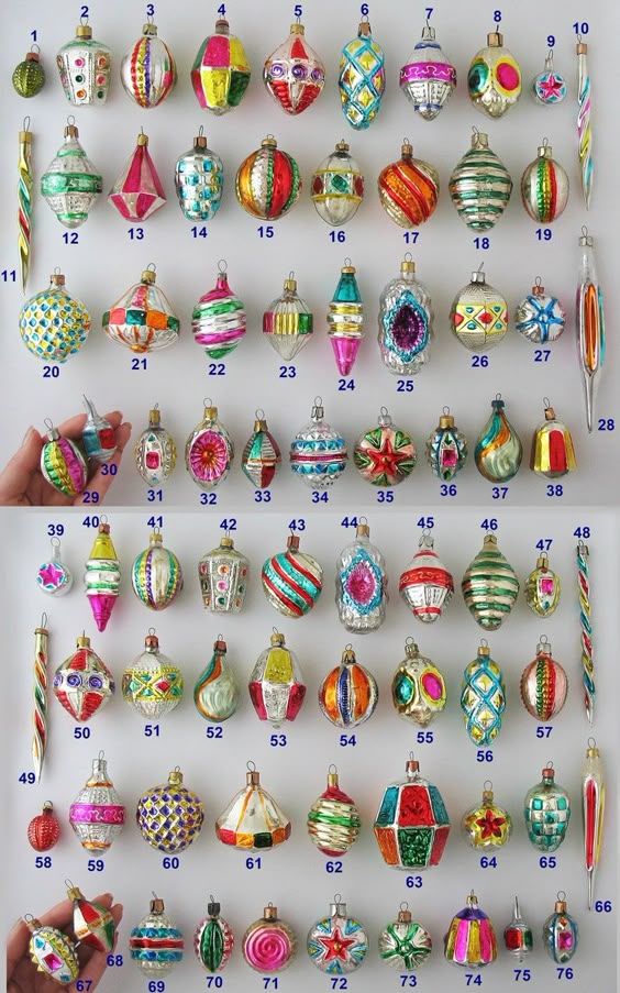 Add a splash of retro glamour with 1950s-style glass ornaments. These hand-blown, hand-painted treasures come in dazzling shades of red, blue, green, and purple. Their glossy finish and antique character make them perfect for a vintage or eclectic Christmas tree, each piece offering a unique story and shimmer.