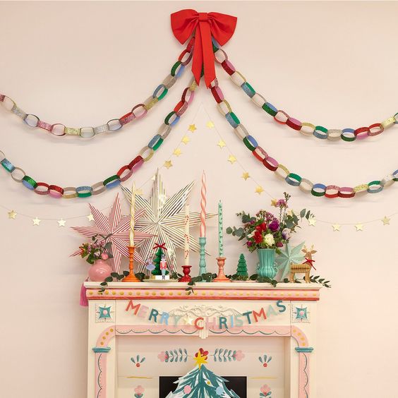 Bring nostalgic charm to your holidays with vintage-inspired Christmas decor. Think tin ornaments, bold hues of gold, pink, blue, and orange, and cozy old-world touches reminiscent of a Little Women-style celebration. This mix of retro flair and modern vibrancy creates a timeless yet eye-catching holiday display.