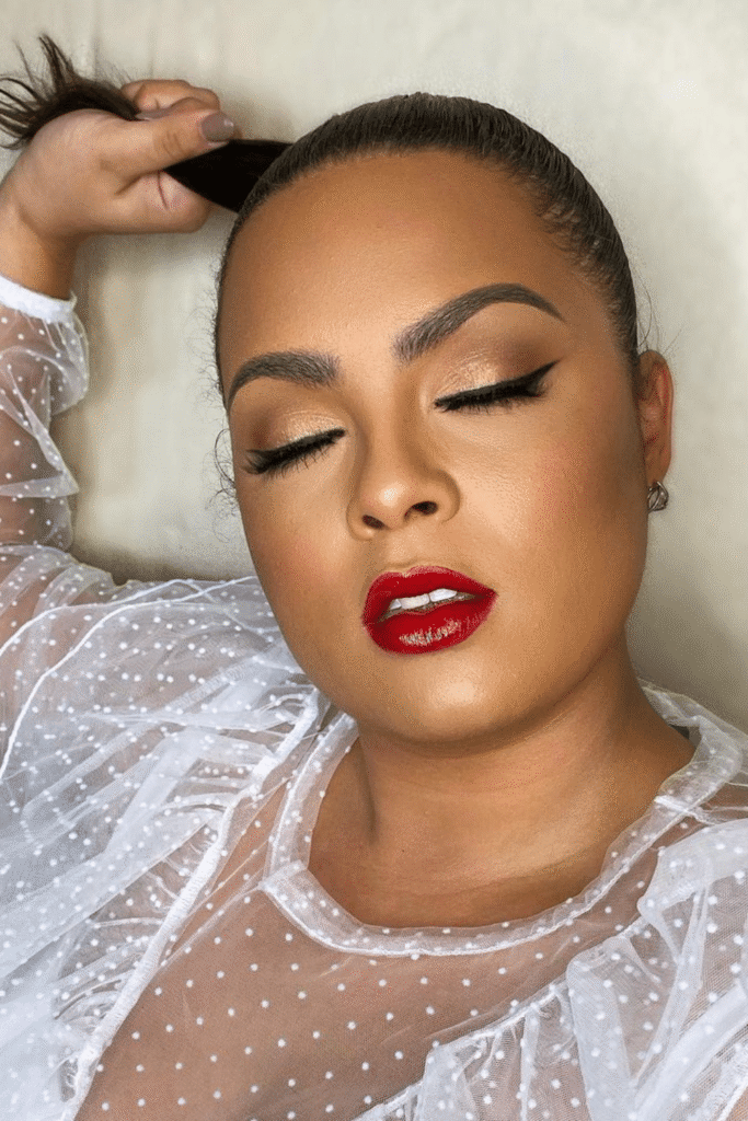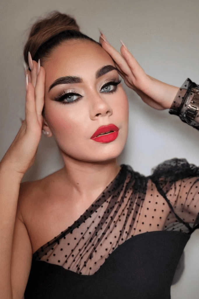 For my matte lip lovers—this one’s calling your name. A bold red lip, soft lashes, and glowing skin create a timeless holiday glam. Pair it with a cozy turtleneck for that “effortlessly chic” Christmas vibe.