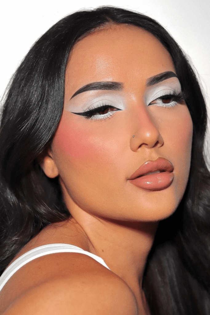 For those who love bold eye looks, this smokey white eyeshadow paired with a rosy blush is a showstopper. It works beautifully for Christmas parties but transitions seamlessly into New Year’s Eve glam too.