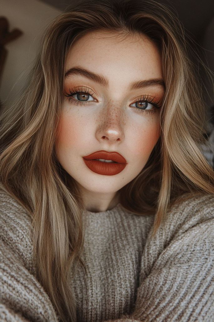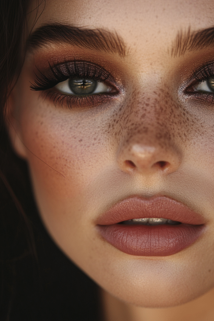 For understated beauty, use warm browns and soft oranges to create a subtle, earthy eye. A matte nude lip and a soft highlighter enhance the natural glow while keeping things chic and minimal.