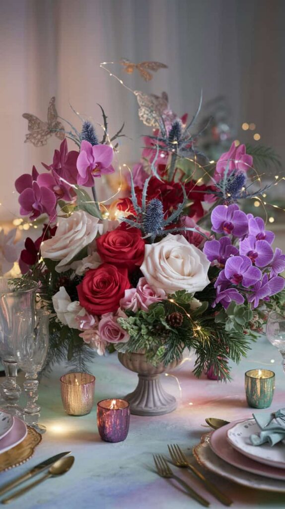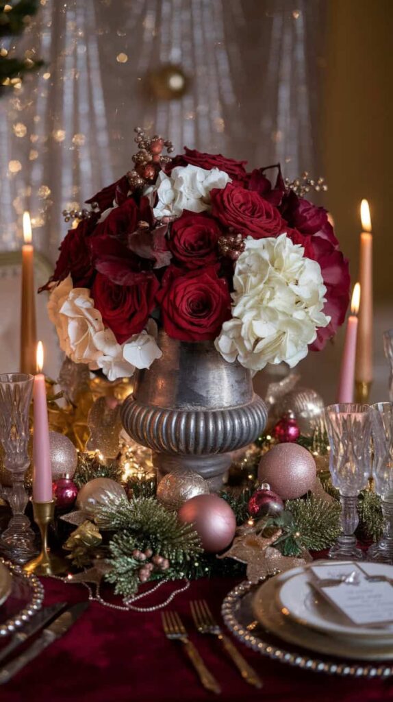 Seasonal blooms like poinsettias, amaryllis, roses, and winter greenery bring elegance and fragrance to your table.