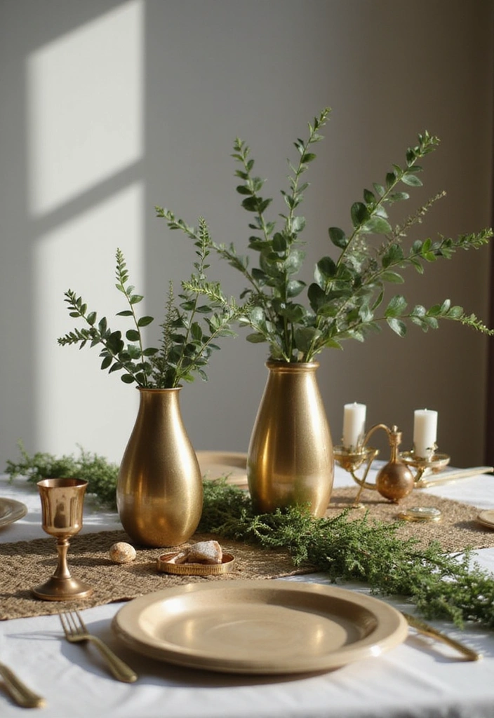 Add instant sparkle with gold, silver, or rose gold accents. Metallic vases, candle holders, and decorative bowls catch the light beautifully and give your space a sophisticated, celebratory vibe. Spray paint old items for a fresh look, and pair metallics with greenery or white flowers to balance the shimmer.