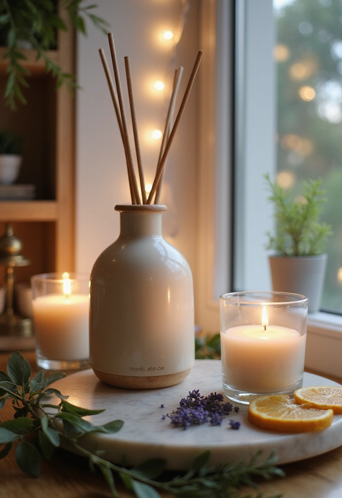 Elevate your home with diffusers, scented candles, or potpourri. Citrus, fresh linen, or herbal aromas boost mood and create a welcoming atmosphere.