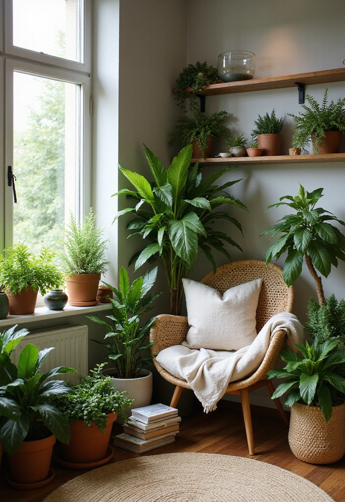 Bring the outdoors in with plants, flowers, and earthy textures like wood, stone, or jute. Low-maintenance plants like succulents or ferns are perfect for a touch of greenery that feels fresh and calming.