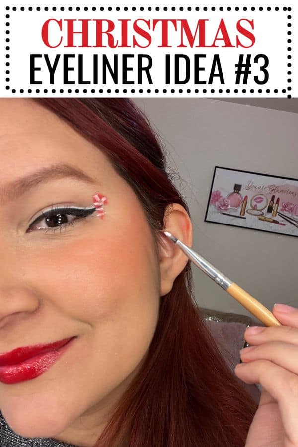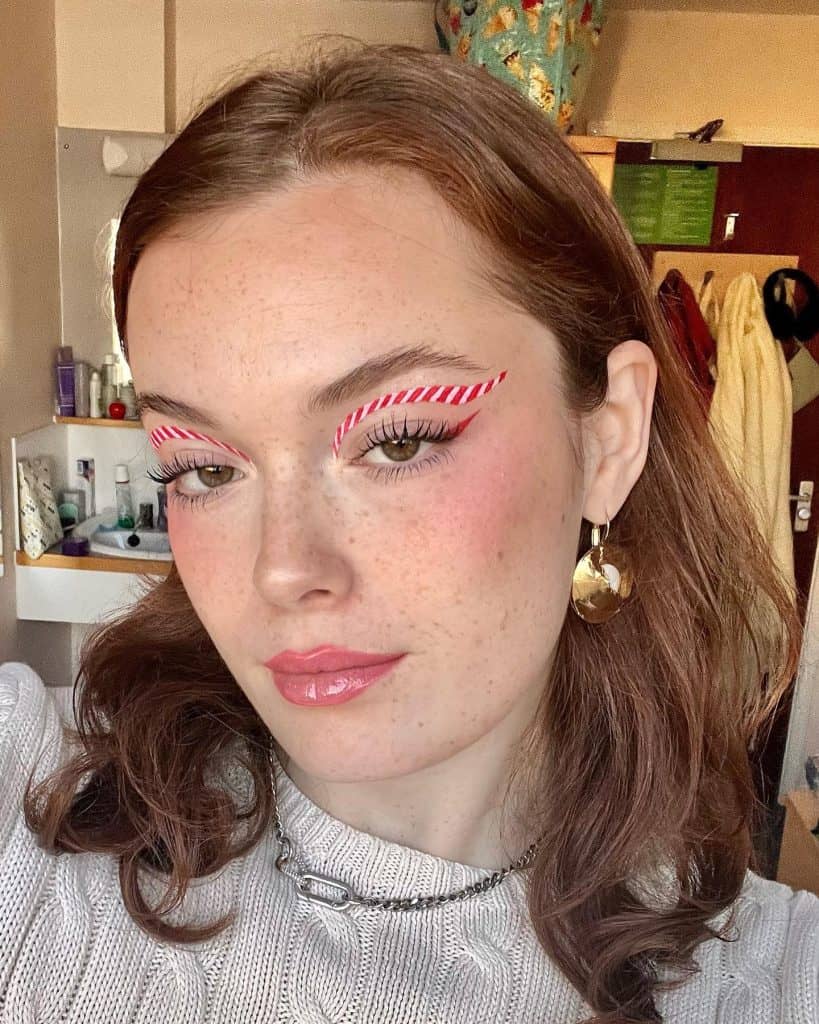 ✨ Alternative: Instead of drawing a candy cane, create a striped eyeliner look by alternating red and white across your lash line.