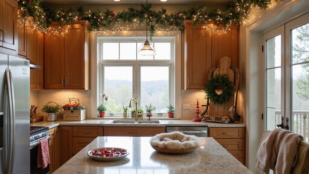 Transform your outdoor space into a storybook scene with a white picket fence dressed in bold red bows. Add ornaments, tiny wreaths, or even pom-poms for a playful twist that welcomes guests before they’ve even stepped inside.