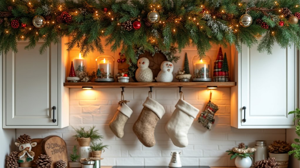 Adorn your walls with seasonal farmhouse prints in red and white—think reindeer, snowflakes, or charming winter landscapes. Mix and match frames for a casual, lived-in feel that radiates warmth and personality.